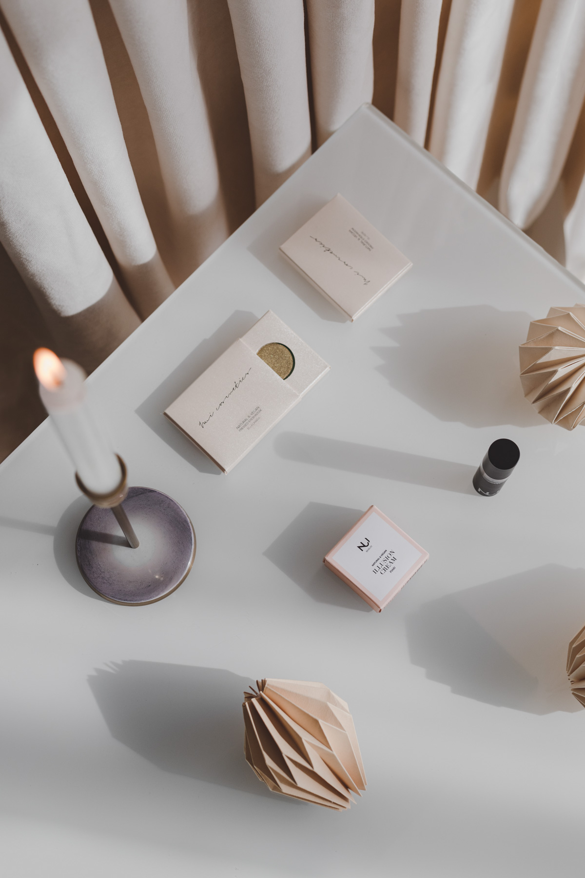 Se hicieron dos sesiones de fotografía de producto diferentes. Una para la presentación de cada marca, usando únicamente varias cartulinas y fondos de diferentes colores, y diseñando composiciones con los tarros, que por cierto son preciosos.